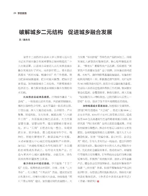 业和美乡村。打响乡村振兴大会战,持续推进“两 型农村集体经济。(作者系中共邻水县委书记)