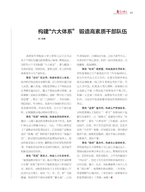 顶层等六个方面构建“六大体系”,着力锻造一 践锻炼、提能增智。