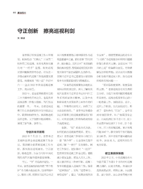 良好态势,又于创新中提质增效, 时,对我省巡视工作取得的成效给 业、川南经济区 20 个县(市、区)