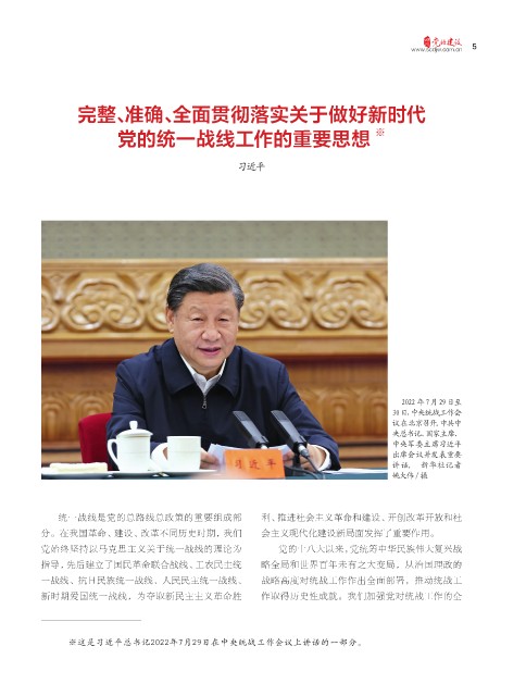 ※这是习近平总书记2022年7月29日在中央统战工作会议上讲话的一部分。
