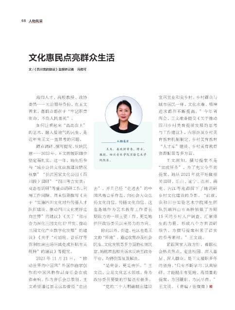 意……2023 年,王文的履职脚步 教授,四川音乐学院实验艺术学 资源配置等多方面。