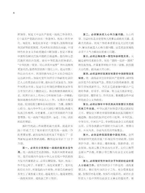 的重要思想,就加强和改进统战工作提出了一系 第六,必须坚持我国宗教中国化方向。全面