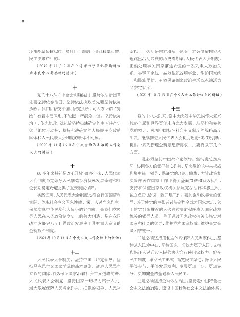 (2021 年 10 月 13 日在中央人大工作会议上的讲话) 二是必须坚持用制度体系保障人民当家作主。坚