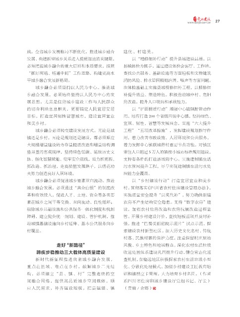 城乡融合必须转变建设发展方式。无论是城 工程”“五项改革措施”,发挥建设规划指导作