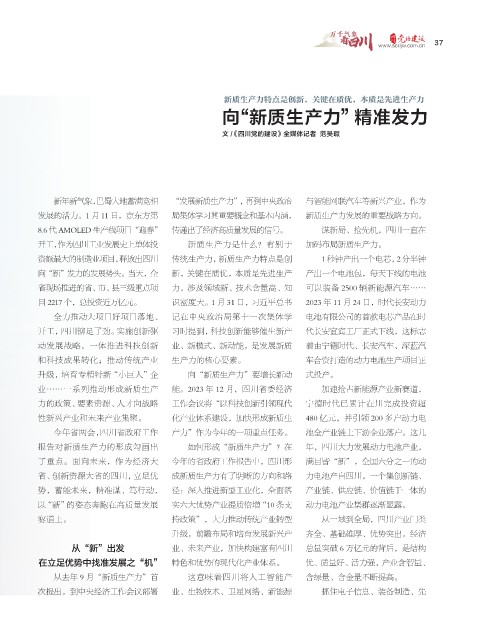 业……一系列推动形成新质生产 能。2023 年 12 月,四川省委经济 加速抢占新能源产业新赛道,