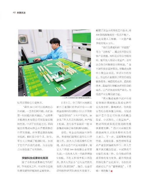 地区的集成电路企业若要获取芯 款集成电路订单的检测与制板。 供重要支撑。”四川天府新区科