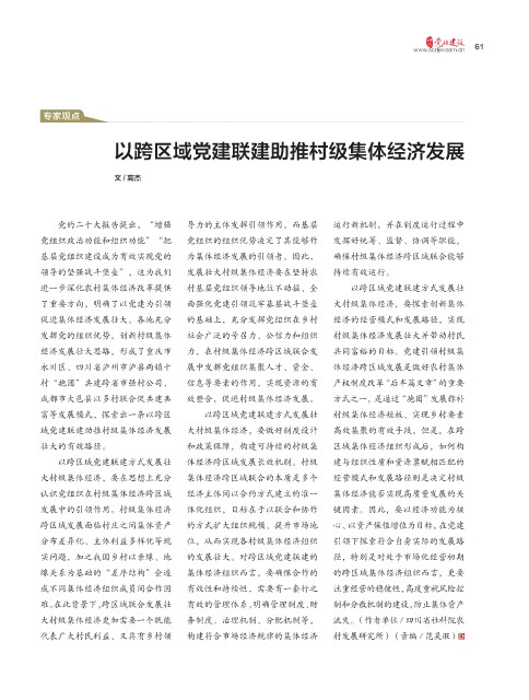 基层党组织建设成为有效实现党的 为集体经济发展的引领者。因此, 确保村级集体经济跨区域联合能够