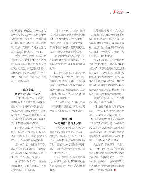 党管一盘棋、建强一队伍,射 平台和网格员联动,这是“全 在网中走、事在格中办”。