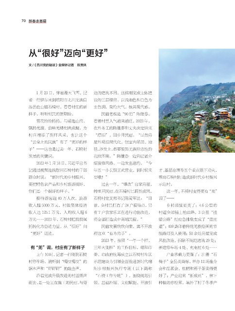 雪花纷纷扬扬,与逶迤山峦、 看着村里人气越来越旺,2023 年,
