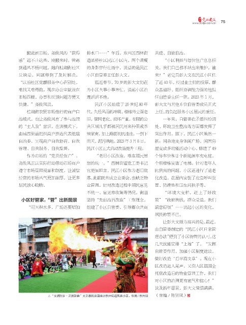 “雨天积水多,广场还要增加 组建了小区自管委,引导群众共商 满意得很”……说起小区的变化,