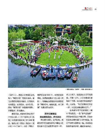 (试行)》,推动小区党组织有机 党群服务站 6883 个,将党的组织 带上小夹子、垃圾袋在小区四处清