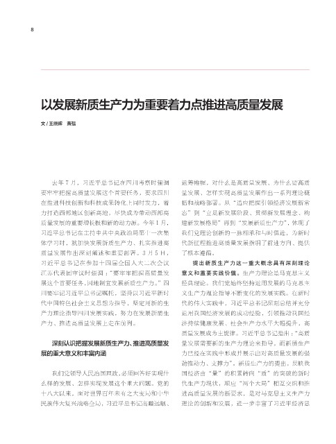 产力理论指导四川发展实践,努力在发展新质生 运用我国经济发展的成功经验,引领推动我国经