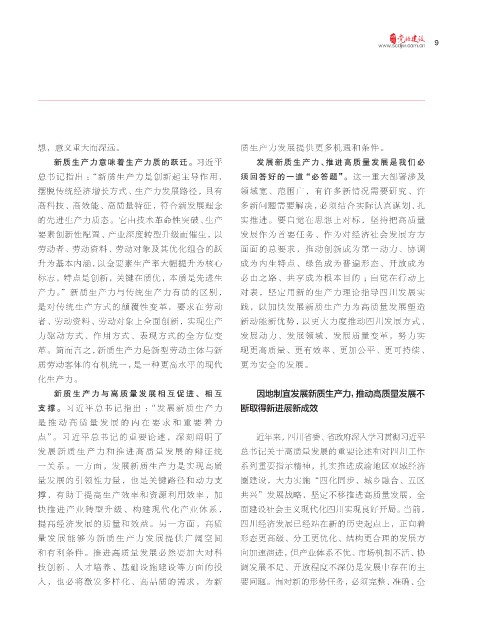 产力。”新质生产力与传统生产力有质的区别, 对表,坚定用新的生产力理论指导四川发展实