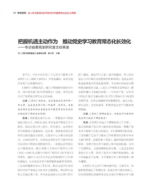 专访了省委党史研究室主任荣凌。 川印记》党史文献电视片和《四川革命诗文 100 篇》