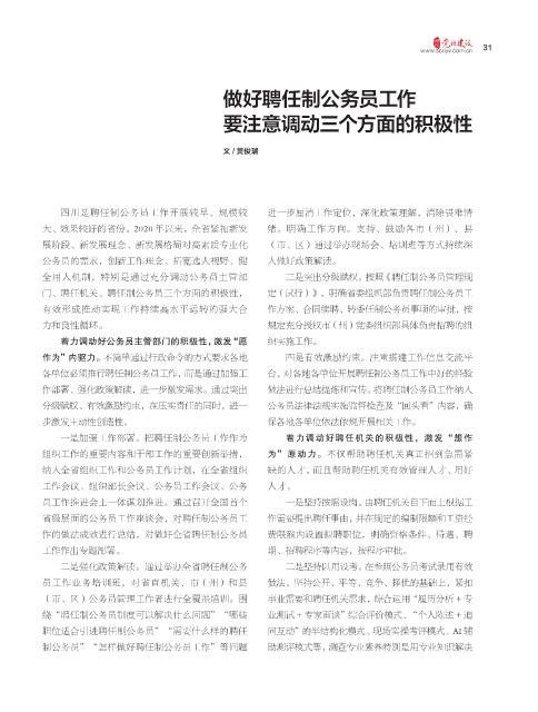 一是加强工作部署。把聘任制公务员工作作为 着力调动好聘任机关的积极性,激发“想作