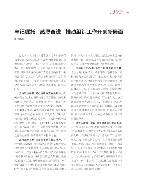 指示,充分肯定党的十八大以来组织工作的积极 坚持好干部标准,选贤任能锻造中坚力量。