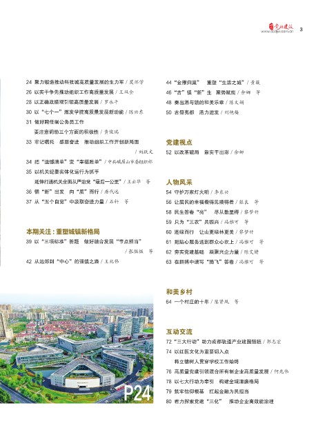 26 以实干争先推动组织工作高质量发展 / 王双全 46 “古”镇“新”生 聚势赋能 / 余娜 等