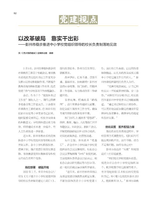 2022 年 1 月,中共中央办公厅 “近年来,彭州市始终坚持以 有计划地安排 15 名校长转任党组