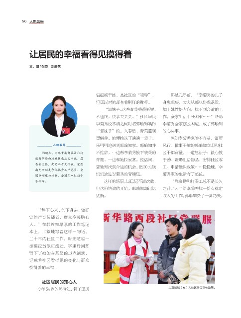 今年 54 岁的郭瑜知,骨子里透 郭瑜知(左)为社区居民宣传政策。