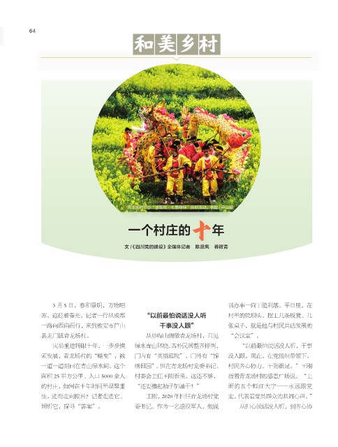 生,进而走向振兴?记者走进它、 王刚,2020 年担任青龙场村党 走,代表着党员群众的共同心声。”