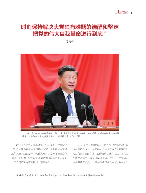2023 年 1 月9日,中共中央总书记、国家主席、中央军委主席习近平在中国共产党第二十届中央纪律检查委员