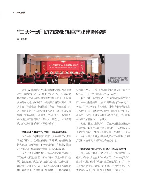 入实施“蓉城先锋·链群赋能”行动,创新构建“轨 链动力”产业链党建共享阵地,并依托阵地开展党务