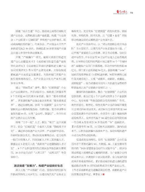 会 + 产业联盟 + 党建联盟”多维度产业协作体系,联 驱动构建良好的成都轨道产业发展生态。