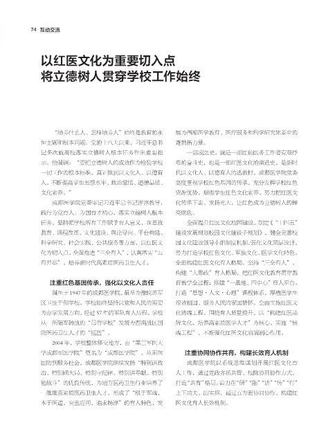 任务,坚持把学校所有工作赋予育人意义,在思政 全面提升红医文化校园建设。制定《“十四五”