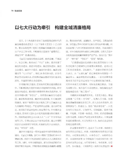 业建设,要求抓实国有企业党风廉政建设和反腐败工 腐、不能腐、不想腐一体推进。同时,把清廉蓉城建