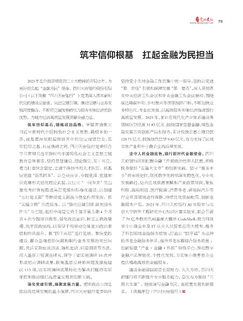 “关键少数” 示范担当。以“强化党建引领 激发担当 融服务产品。2023 年,四川天府银行 AI 实验室与北