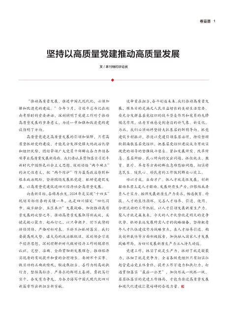 展,以高质量党建促进四川经济社会高质量发展。 驱动本质上是人才驱动。发展新质生产力,归根结底要