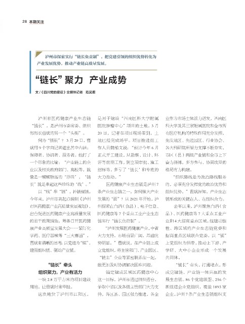 今年来,泸州市高起点编制《泸州 发展的“面”?从 2021 年开始,泸 链形成的关键在人、在组织合力。