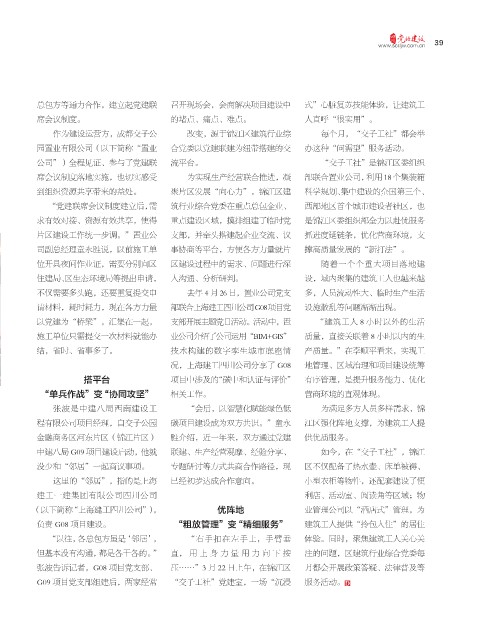 “党建联席会议制度建立后,需 筑行业综合党委在重点总包企业、 西部地区首个城市建设者社区,也