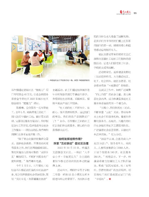 今年 1 月 5 日,石牛镇社工站 馨上演。 设,形成“居民有需求,社工有响