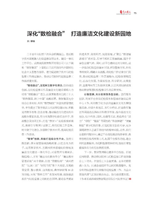 势,率先提出了数字廉洁文化品牌创建目标,积极 建思路,并结合本地区、本行业特点,打造数智集