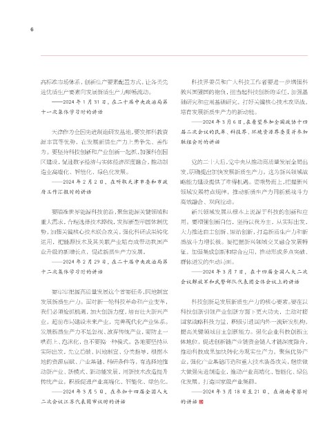 十一次集体学习时的讲话 培育发展新质生产力的新动能。