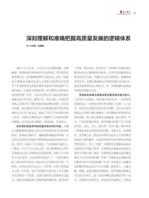 深刻理解和准确把握高质量发展的逻辑体系