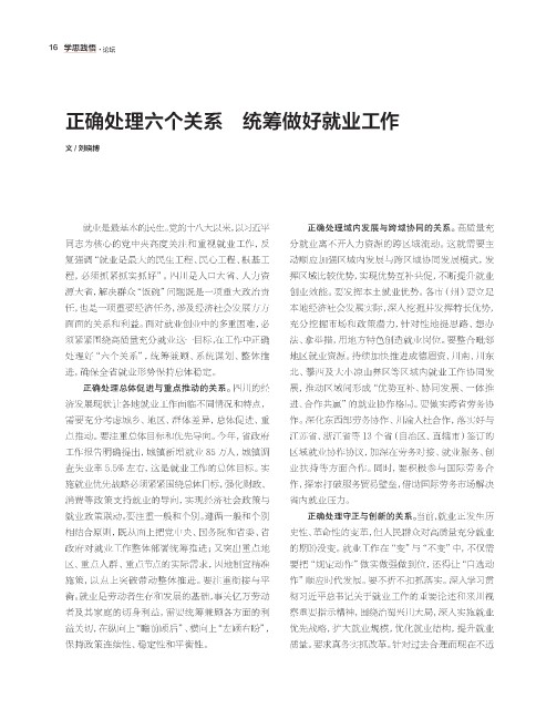 处理好“六个关系”,统筹兼顾、系统谋划、整体推 地区就业资源。持续加快推进成德眉资、川南、川东