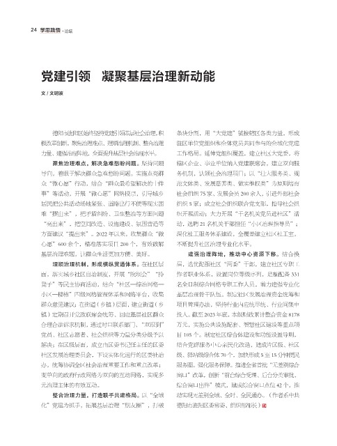 党建引领 凝聚基层治理新动能