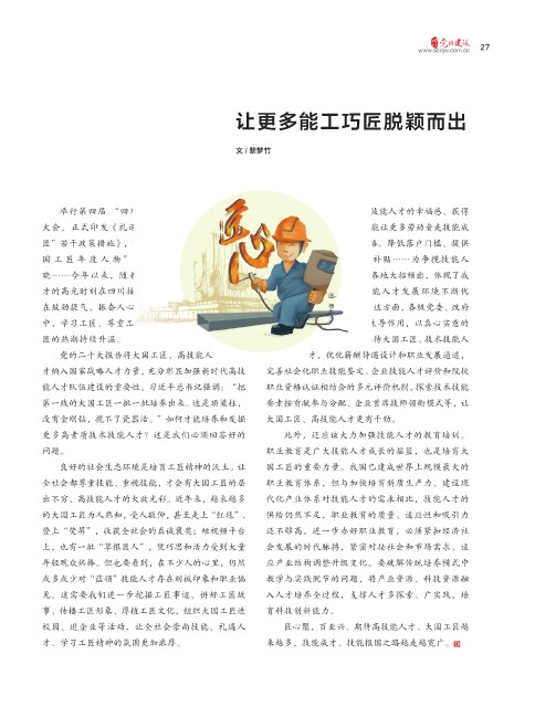 见。这需要我们进一步挖掘工匠事迹、讲好工匠故 入人才培养全过程,支撑人才多探索、广实践,培