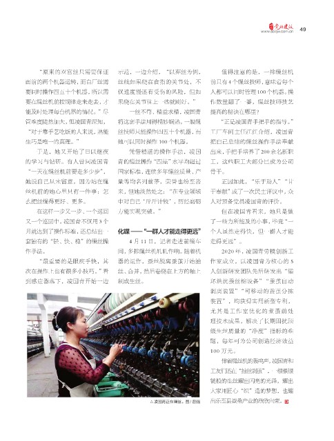 套独有的“轻、快、稳”的缫丝操 4 月 11 日,记者走进前缫车 走得更远”。