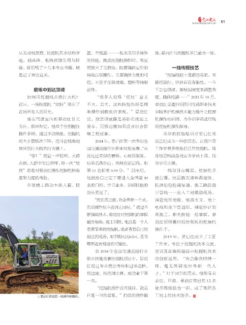 从发动机原理、挖掘机基本结构学 篮、开瓶盖……一些本来用手操作 炼,晏启红与挖掘机早已融为一体。
