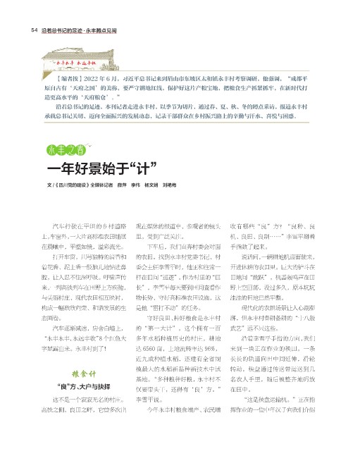【编者按】2022 年 6 月,习近平总书记来到眉山市东坡区太和镇永丰村考察调研,他强调,“成都平