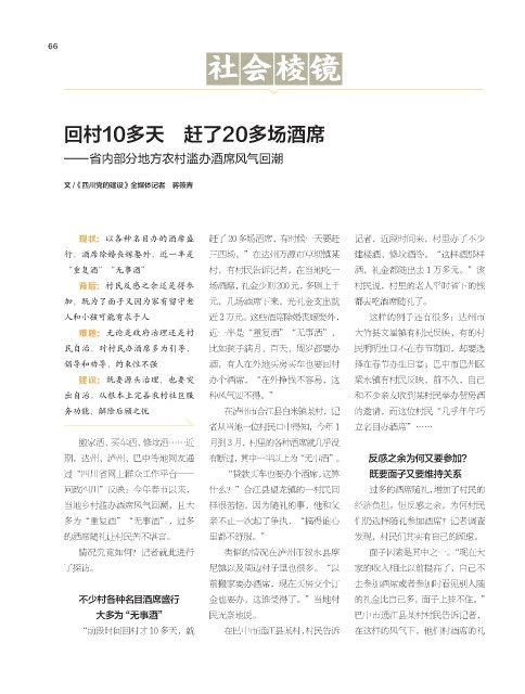 “重复酒”“无事酒” 村,有村民告诉记者,在当地吃一 酒,礼金都随出去 1 万多元。”该