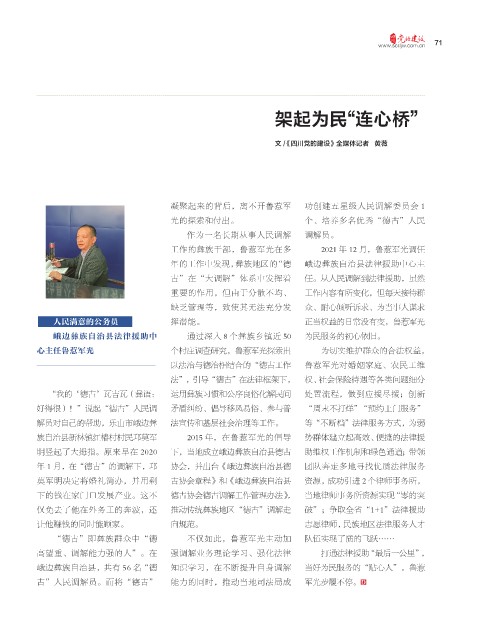 仅免去了他在外务工的奔波,还 推动传统彝族地区“德古”调解走 破”;争取全省“1+1”法律援助