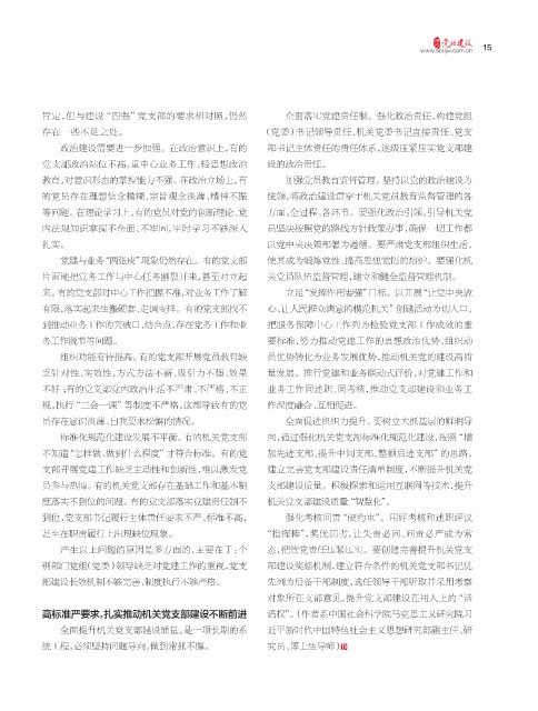 组织功能有待提高。有的党支部开展党员教育缺 员优势转化为业务发展优势,推动机关党的建设高质