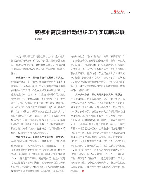 南充市顺庆区全面对标全国、全省、全市组织 关键时刻担当作为的工作实绩;设置“果城菁英”青