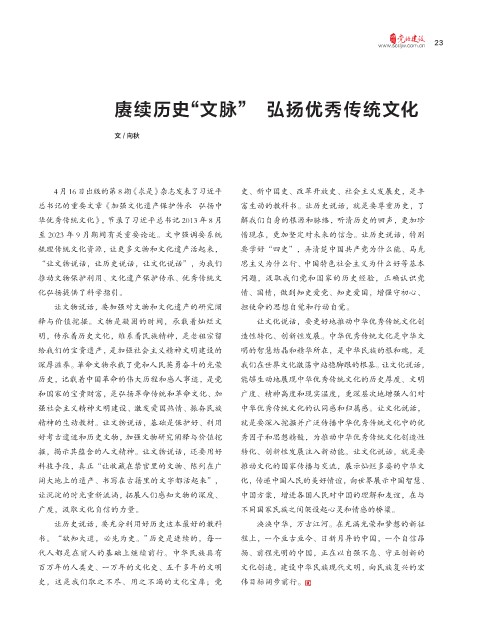 华优秀传统文化》,节录了习近平总书记 2013 年 8 月 解我们自身的根源和脉络,听清历史的回声,更加珍