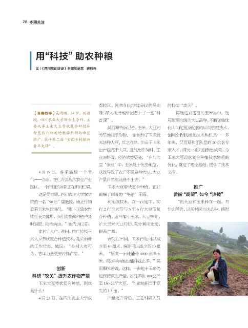 【青春故事】吴雨珊,34 岁,副教 珊,深入浅出地给记者上了一堂“科 筛选适宜密植的玉米品种,选