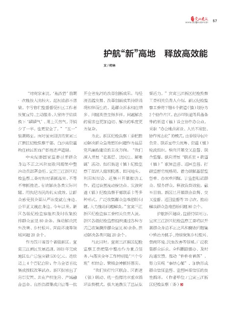 宾三江新区发展迅速,2023 年完成 监察工委把集中整治作为重点任 集群众诉求,全程跟踪督办、及时
